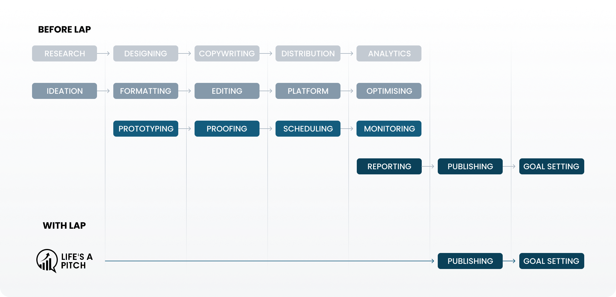 It’s over to us to execute on the strategy, design the graphics, draft the copywriting, schedule the distribution and monitor the results.